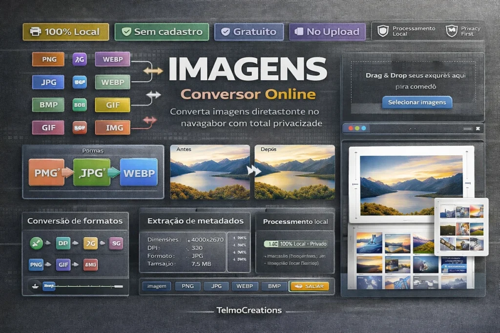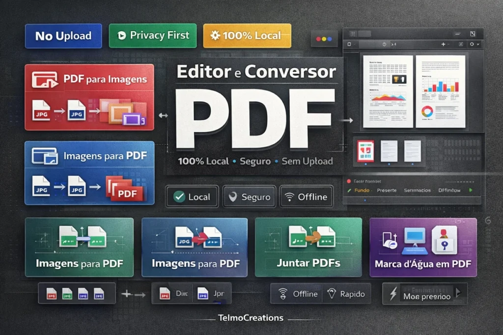 Conversor de PDF TelmoCreations converta, junte, divida e edite PDFs e imagens grátis, direto no navegador, sem enviar arquivos para terceiros.